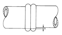 Ketidakselarian 'v' sambungan paip tidak melebihi 10% daripada tebal dinding.