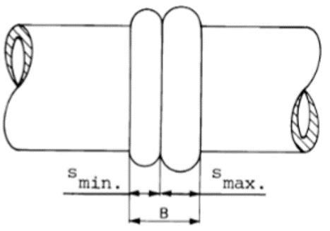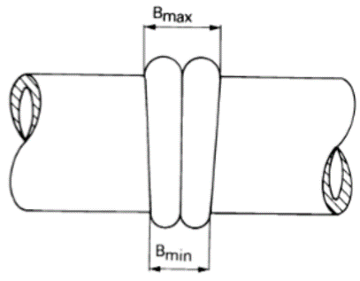 Perbezaan lebar bead pada paip mestilah berbeza ±20% daripada lebar bead purata.
